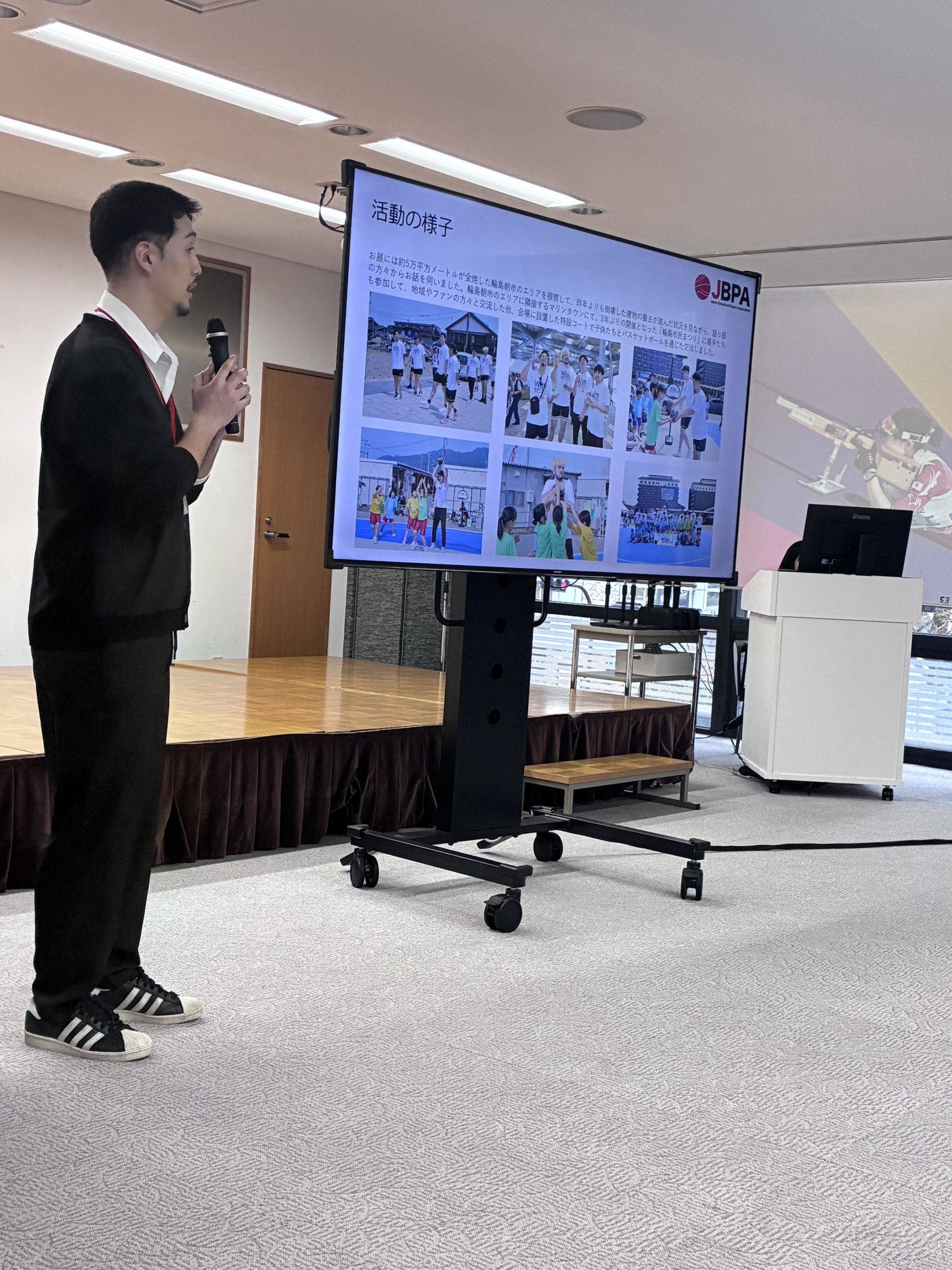 HEROs助成事業活動報告会に田渡凌選手会長が参加して、「能登半島地震復興支援活動」についてプレゼンテーションを行いました。前年度に選手会として訪問した際との比較や「輪島市民祭り」で地域の方々と交流して、現地で感じたことを報告しました。